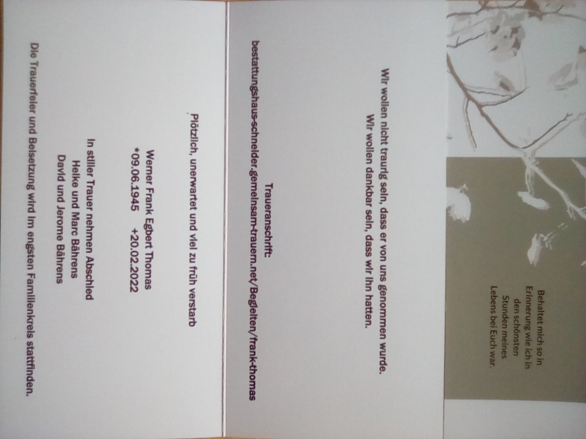 Frank Thomasgestorben am 20. Februar 2022